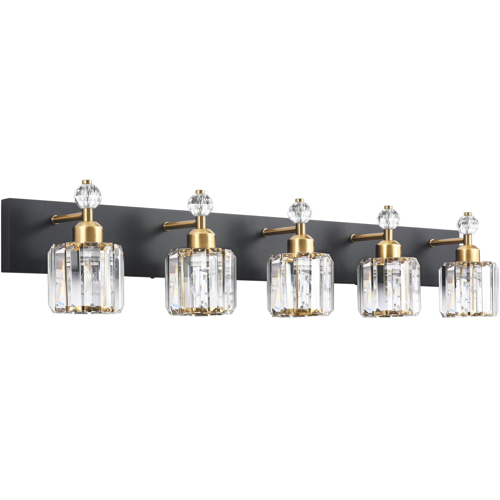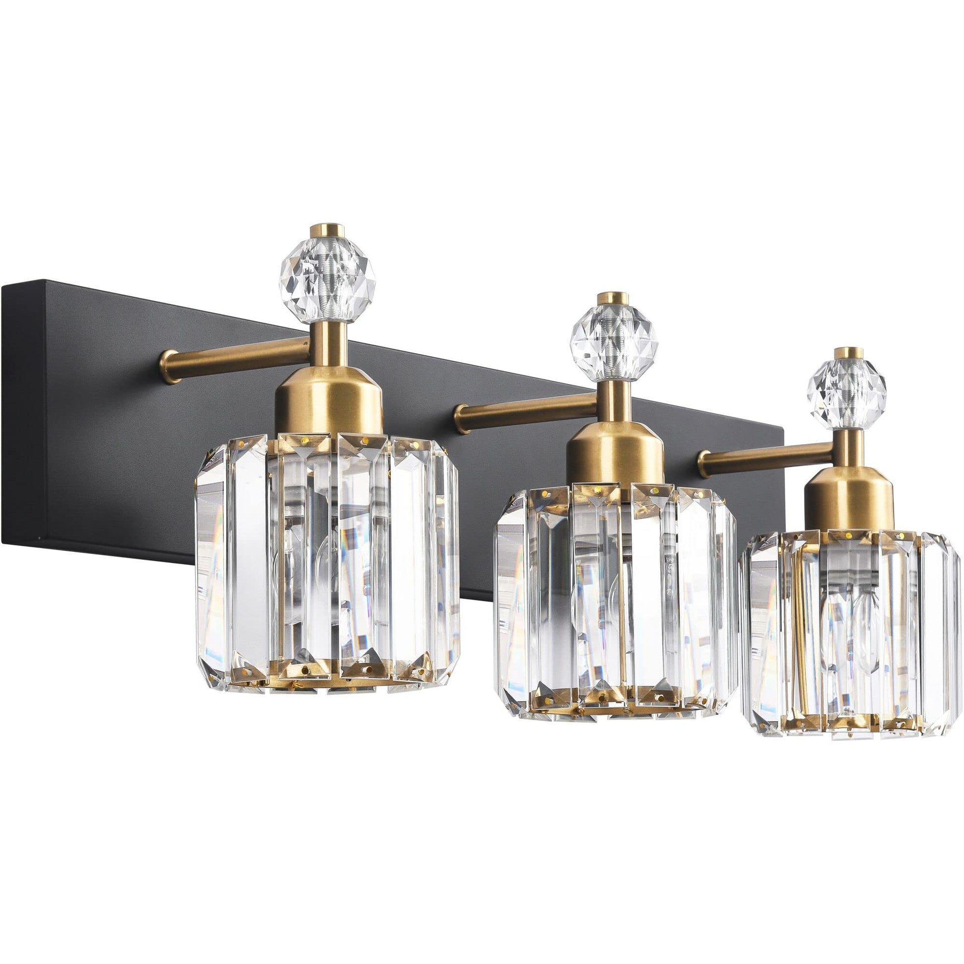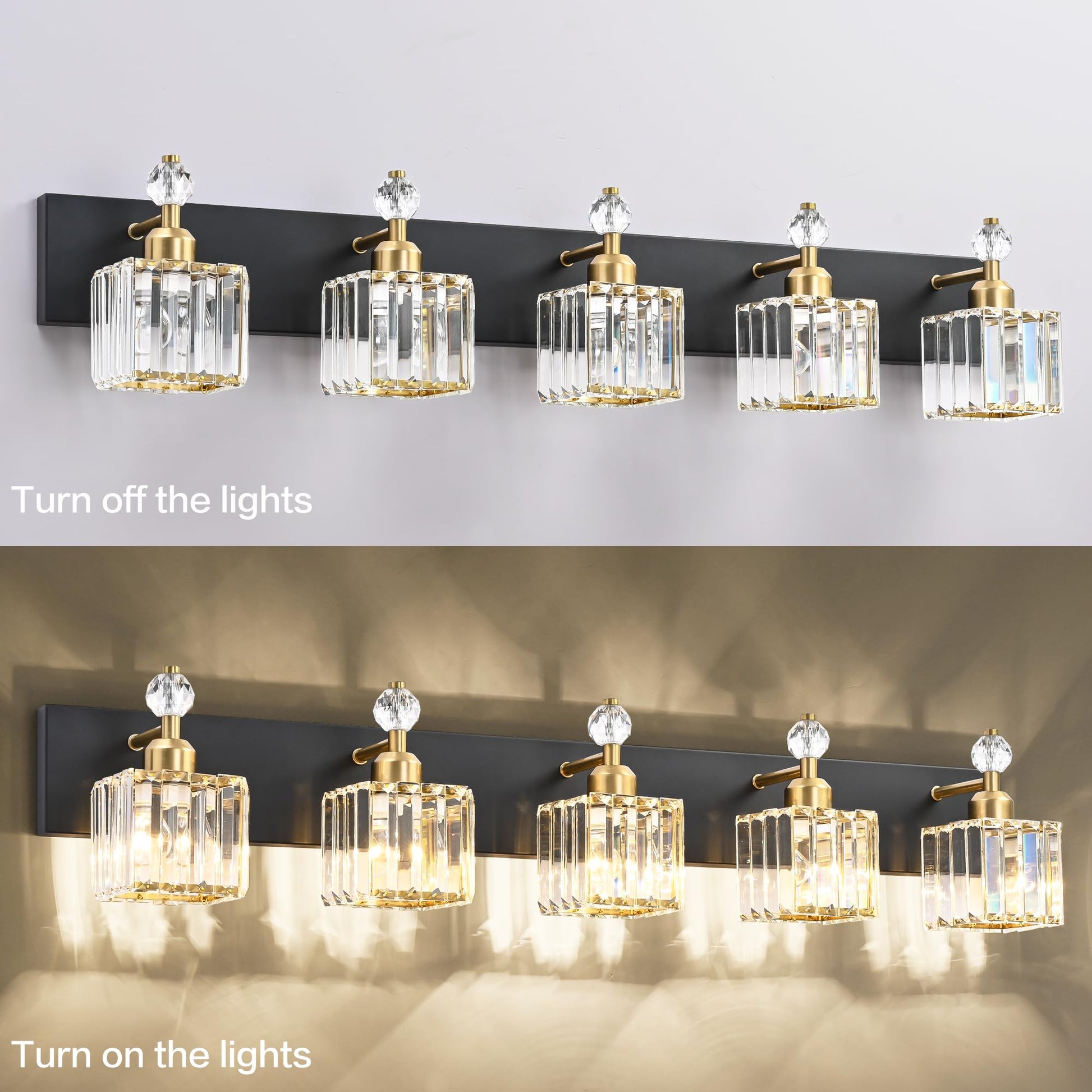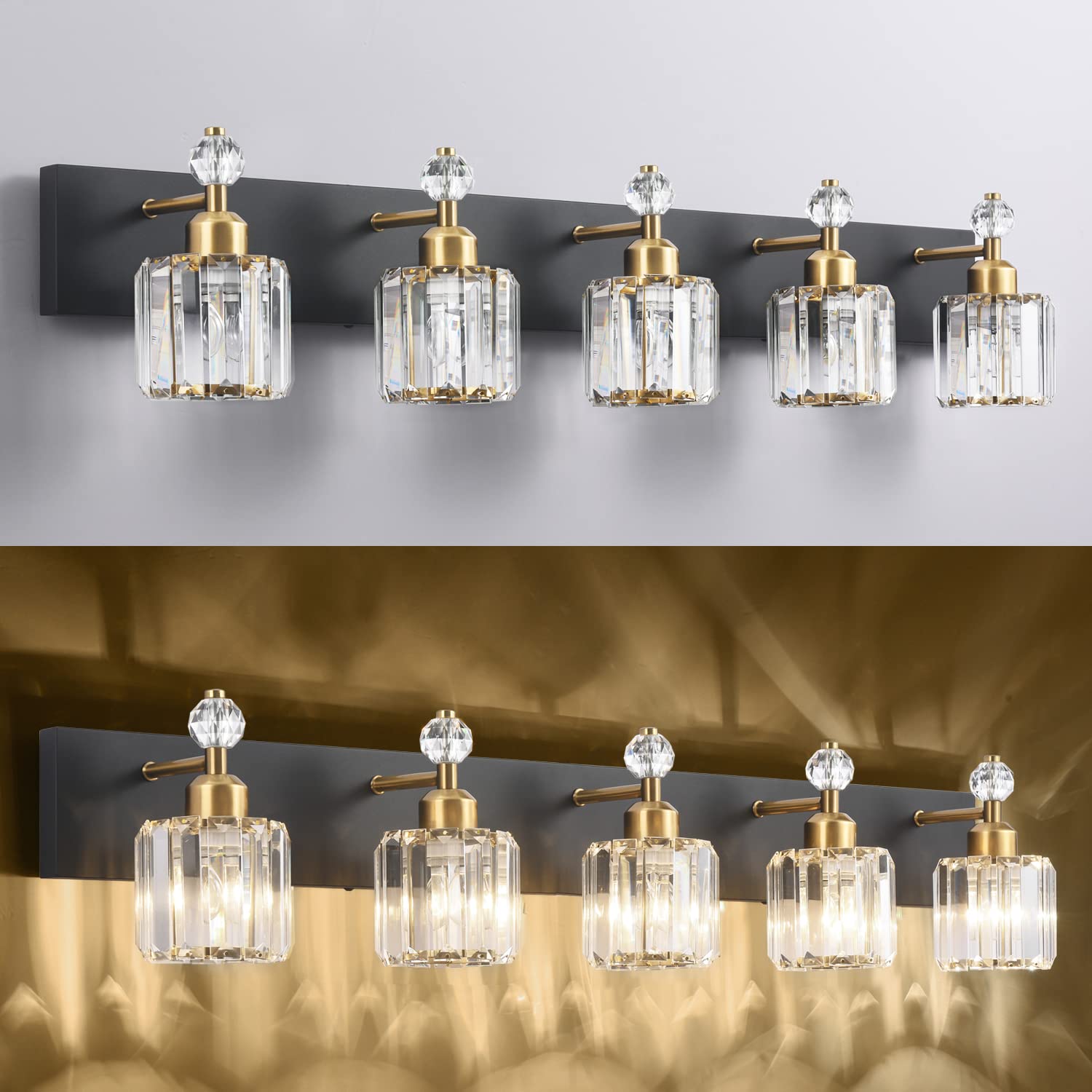 PRESDE Black Gold Crystal Bathroom Vanity Lights Fixtures Over Mirror Modern 3 Light Bath Wall Lighting