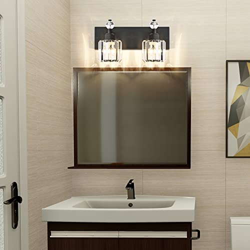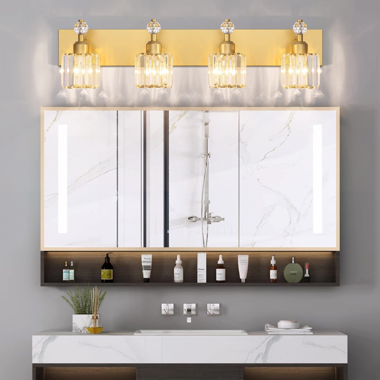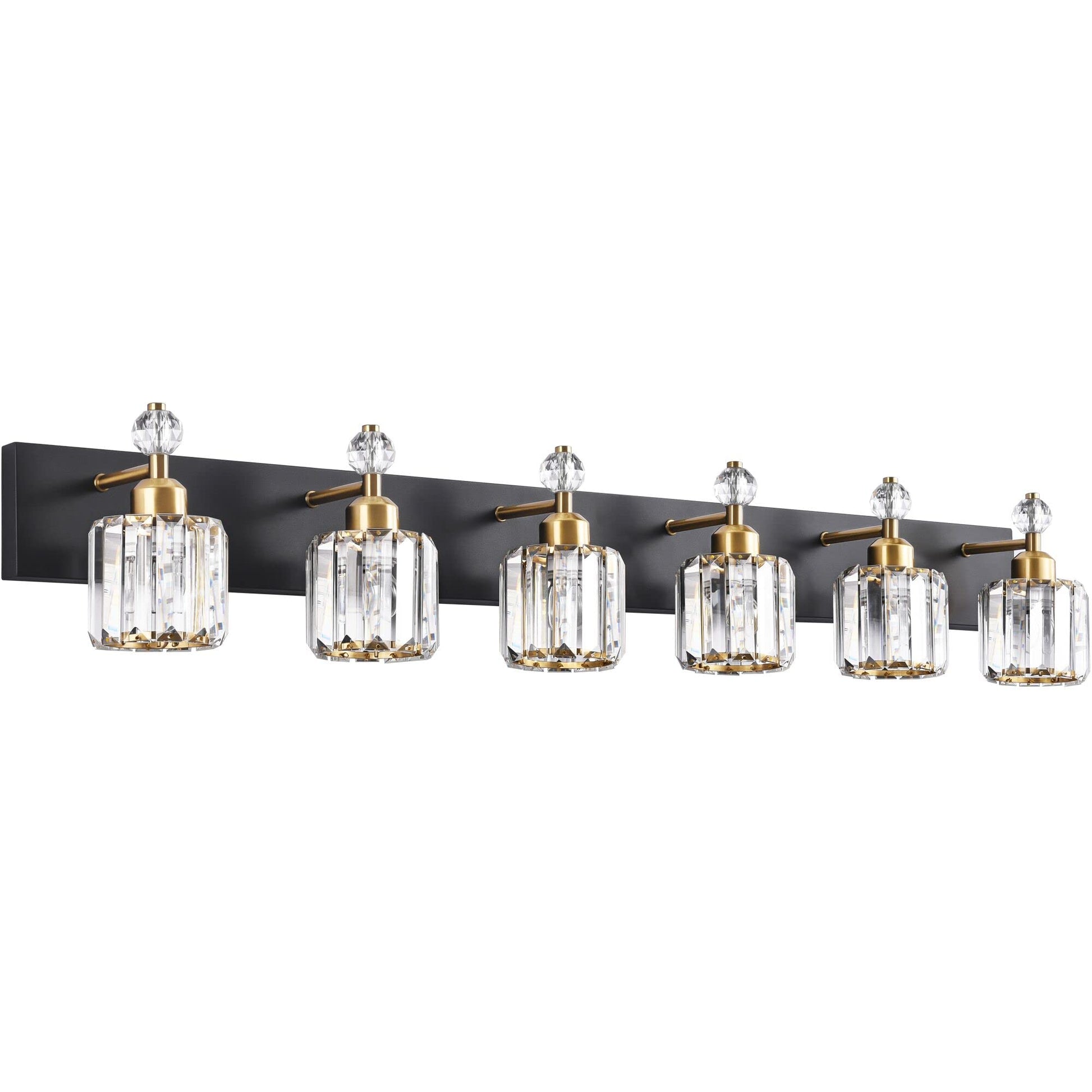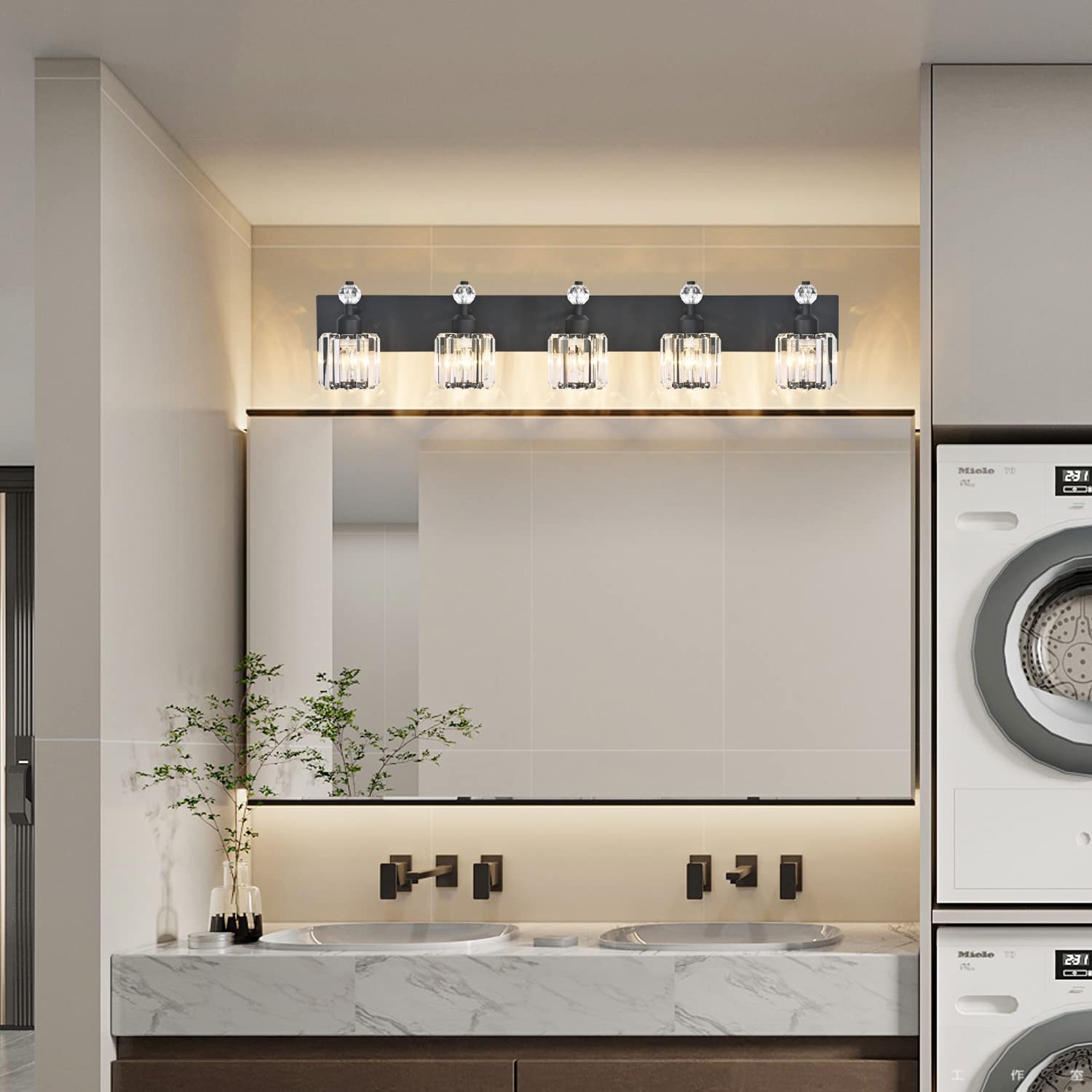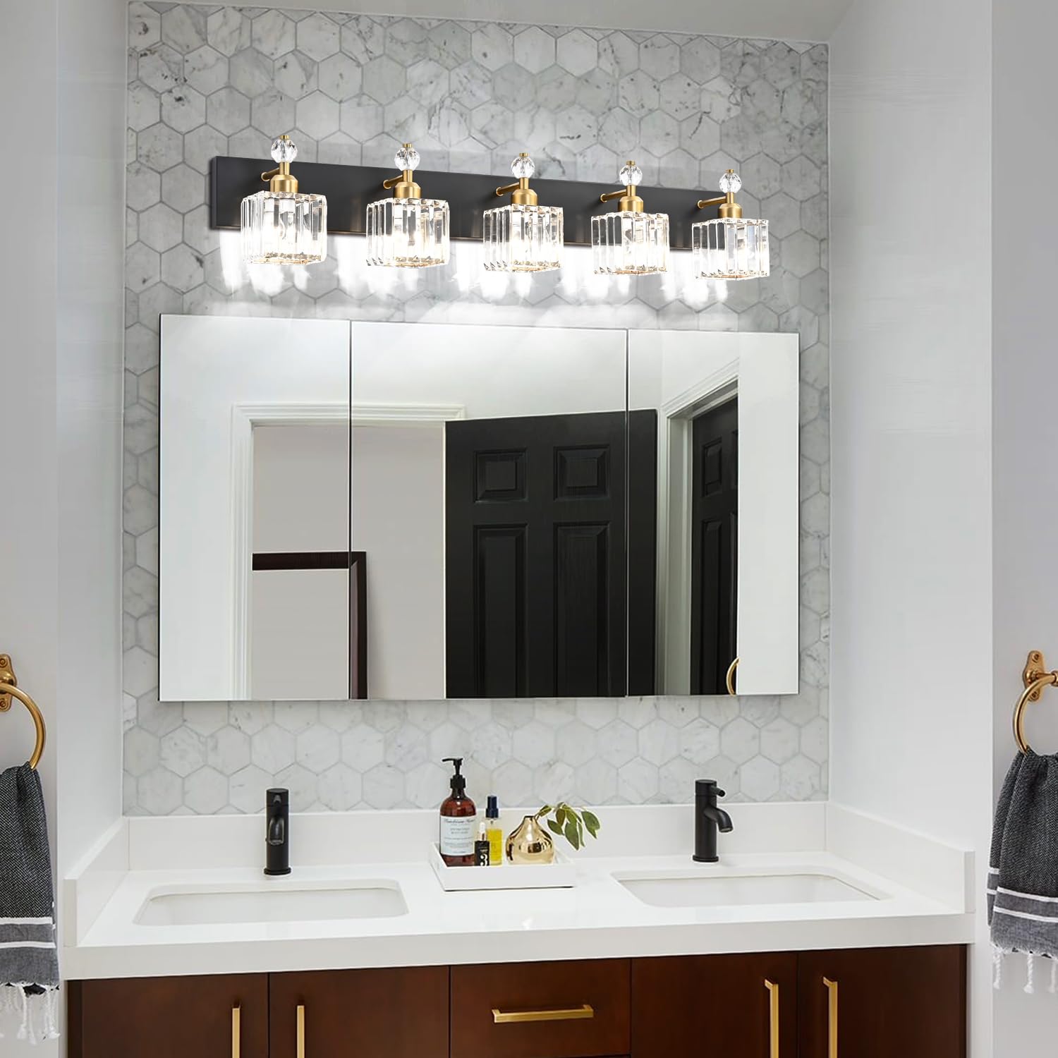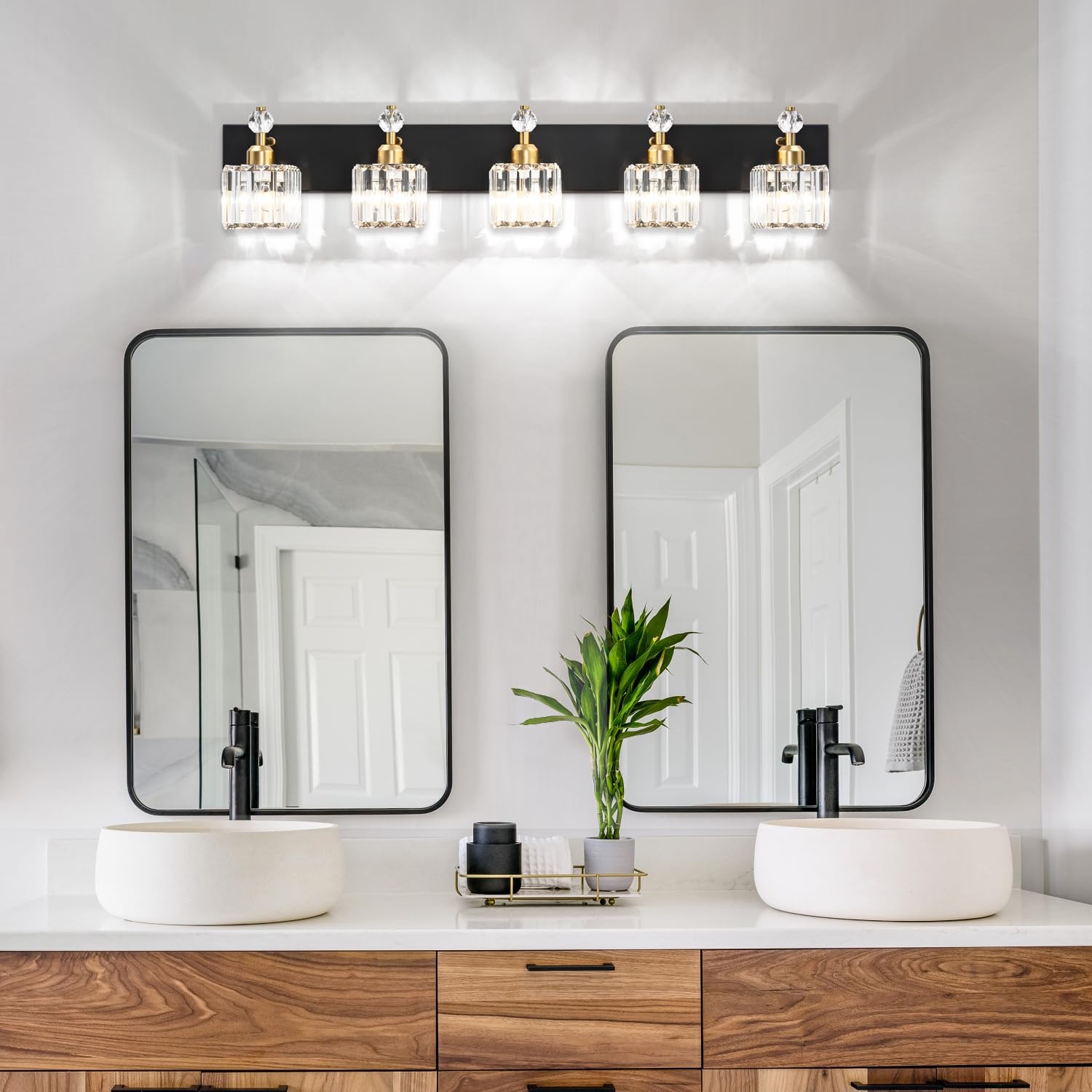 PRESDE Black Gold Crystal Bathroom Vanity Lights Fixtures Over Mirror Modern 3 Light Bath Wall Lighting