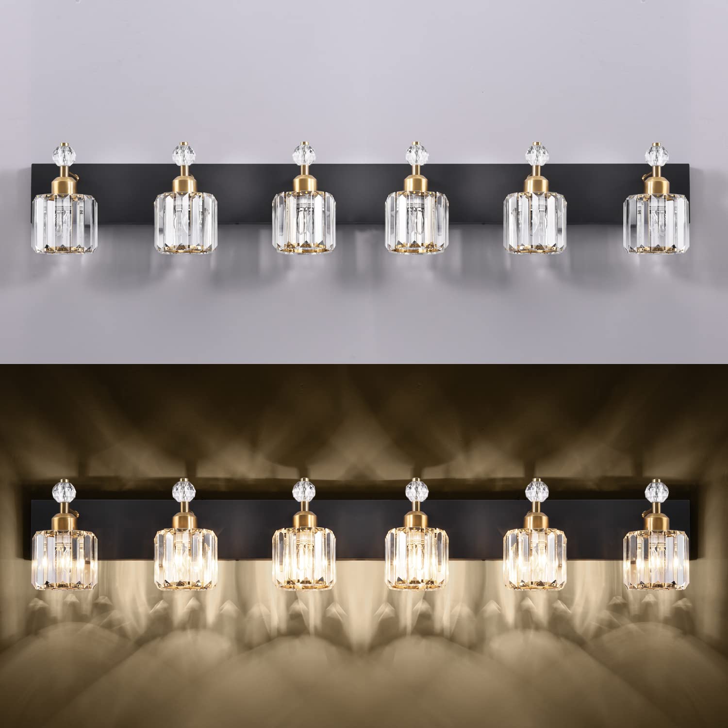 - ❤️【HIGH QUALITY MATERIAL】 Best K9 crystal+Matte black back plate with golden frame .Waterproof & rust-proof ability, Ensure long life using in damp environment.