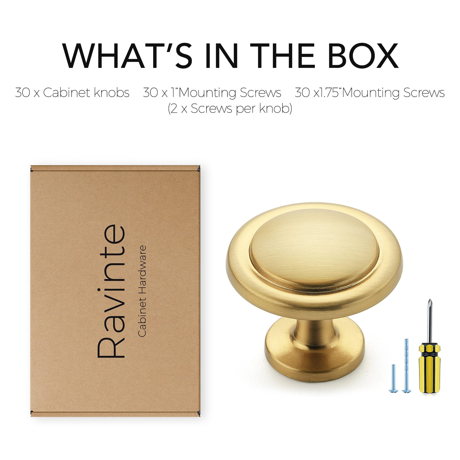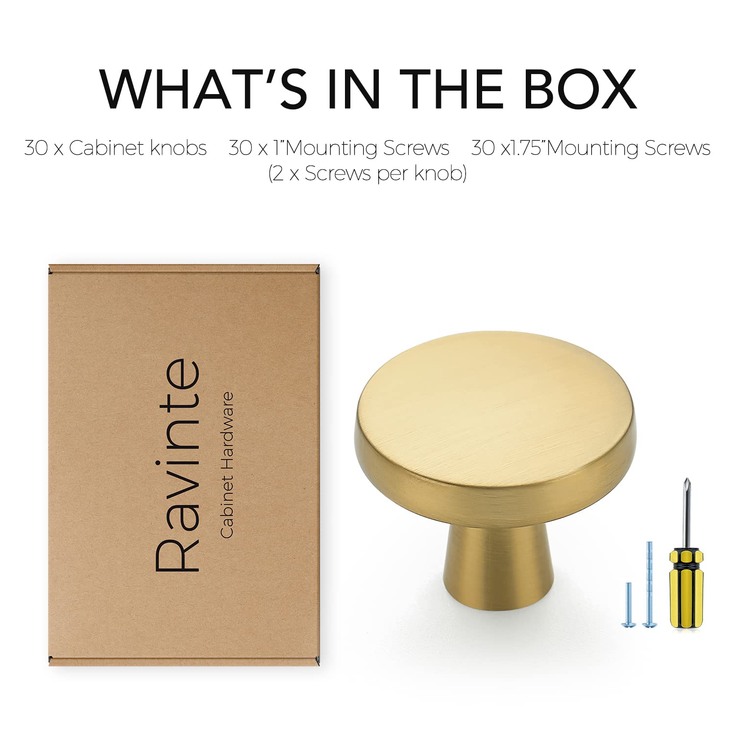 Ravinte 30 Pack Solid Knobs Kitchen Cabinet Knobs Round Knobs Dresser Drawer Knobs Gold Cabinet Hardware Round Cabinet Door Knobs Drawer Knobs Brushed Brass Drawer Pulls
