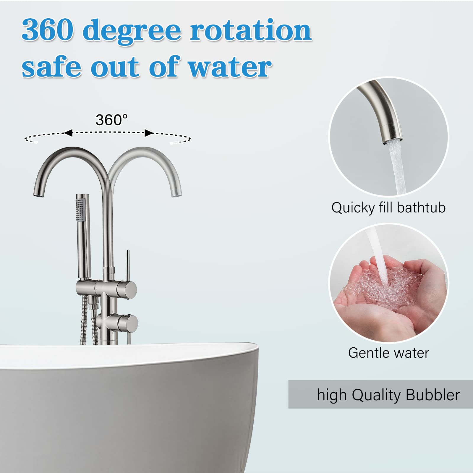 - 【Tub Filler Functions】:360 Degree Swivel Spout, Hand Shower with 59.06’’(150cm) shower hose,Come with a diverter knob,and switch between tub spout and hand shower.Flow Rate: Max 6 GPM(Tub Spout);2.5 GPM(Hand Shower).Using Sedal Ceramic Cartridge and Neoperl Aerator for Durability and Reliability.