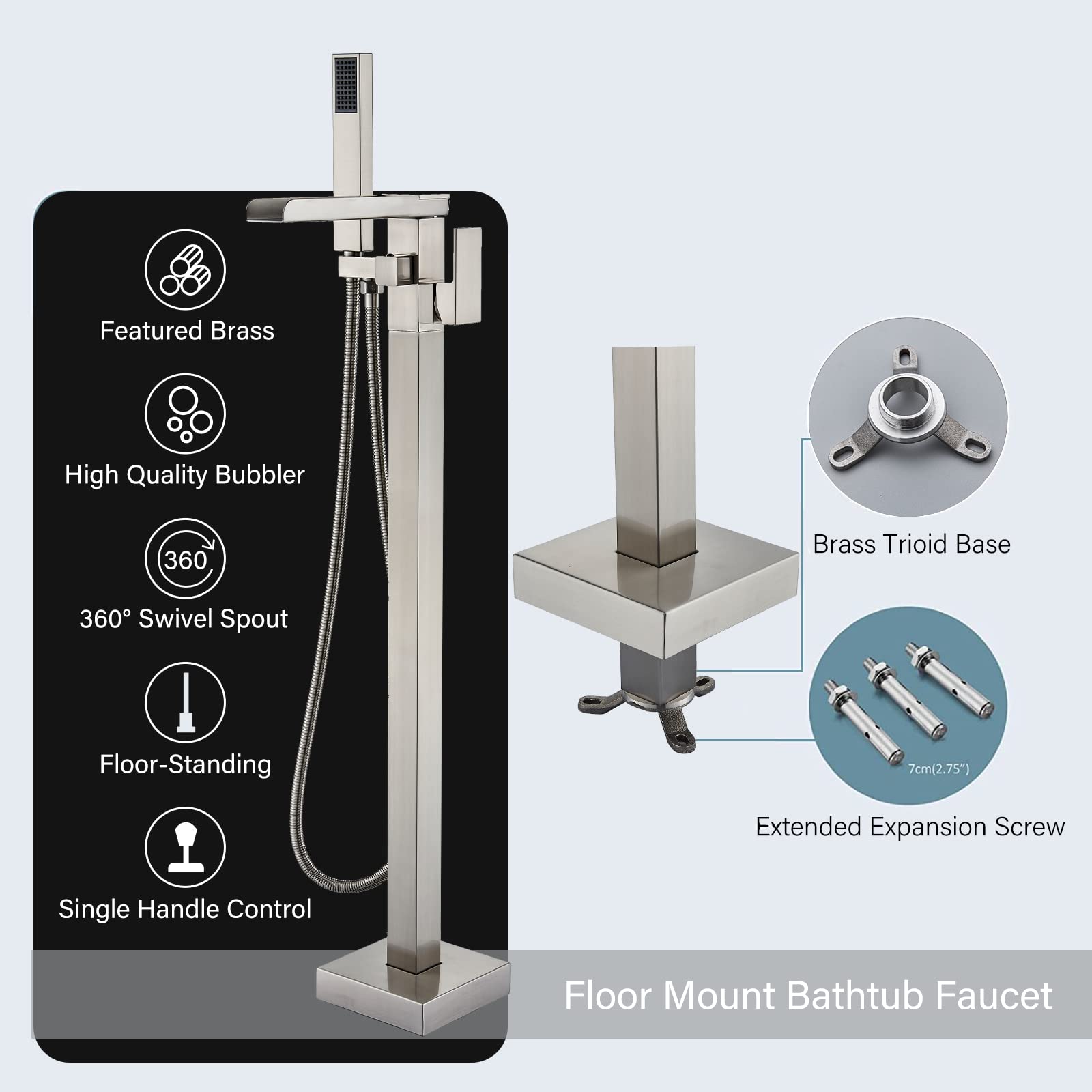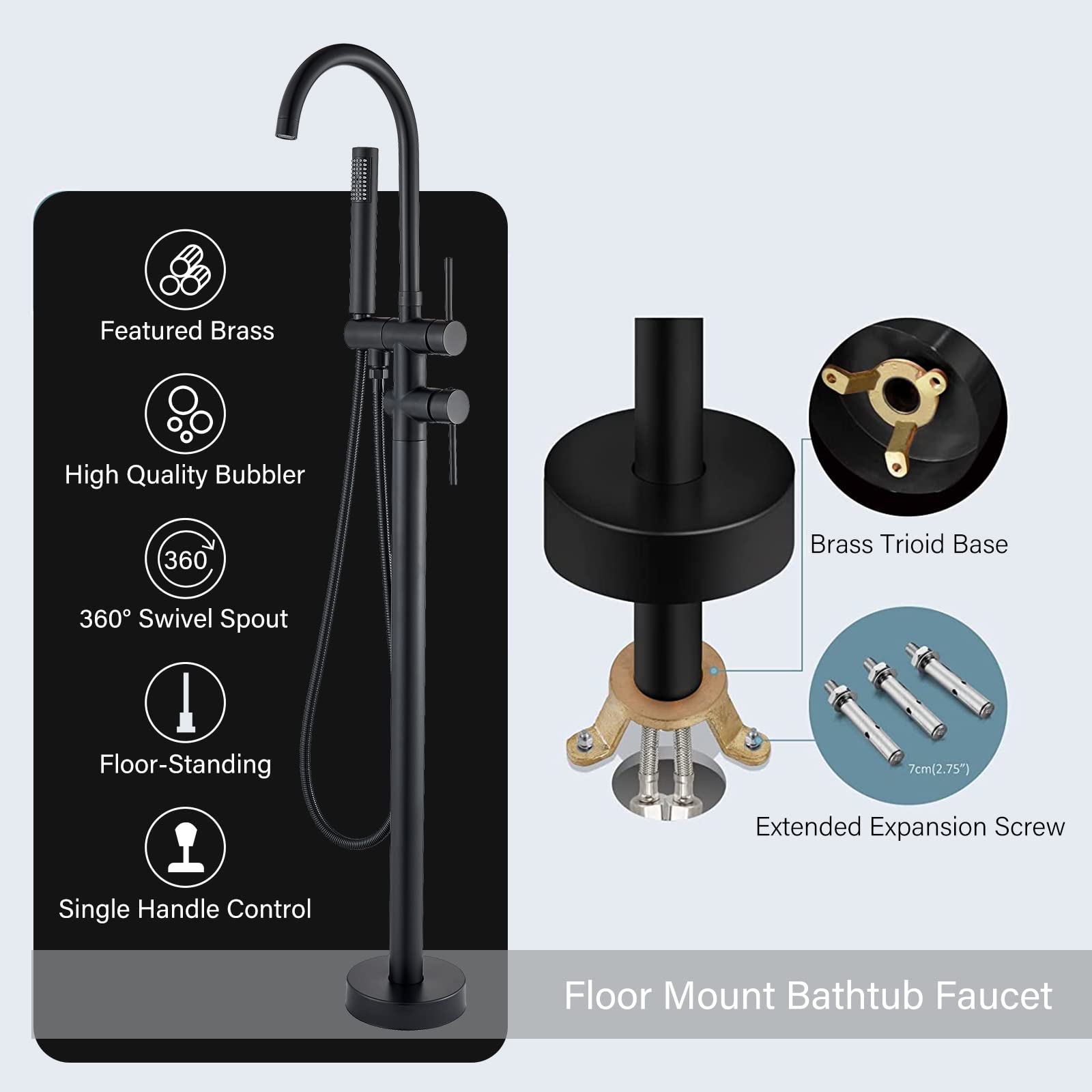 - 【Freestanding Bathtub Faucet Material】:Soild Brass thickened black finish,brass connectors, the material to prevent corrosion, matte black finish,high-End concealed brackets design,appearance of European and American style and the multi-layered electroplating passing the Salt Spray Test, it can easily face the surface corrosion by humid environment in the bathroom.