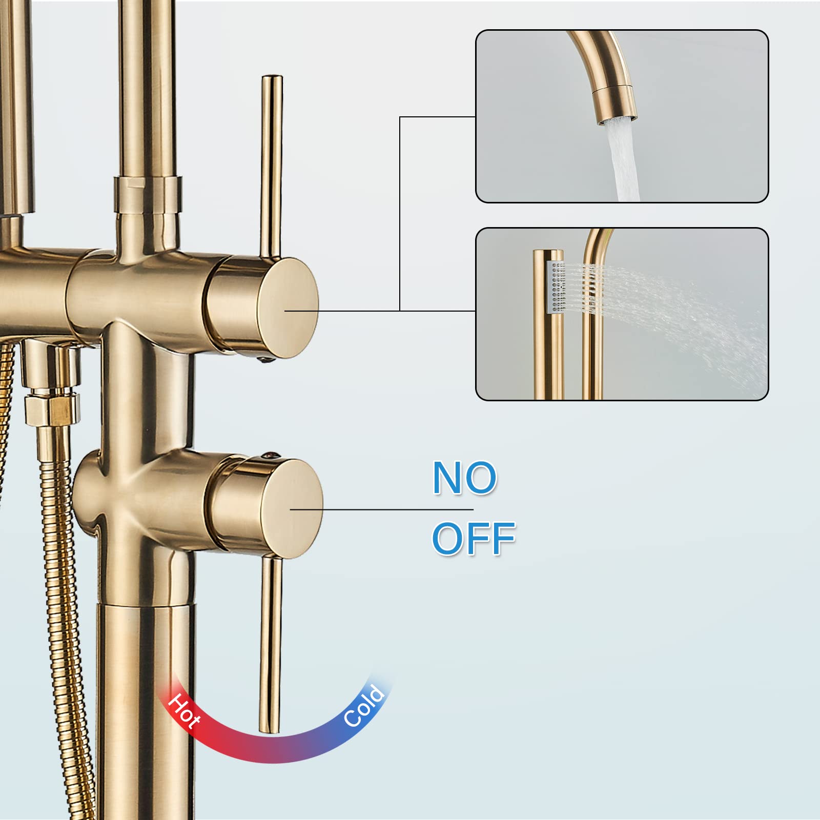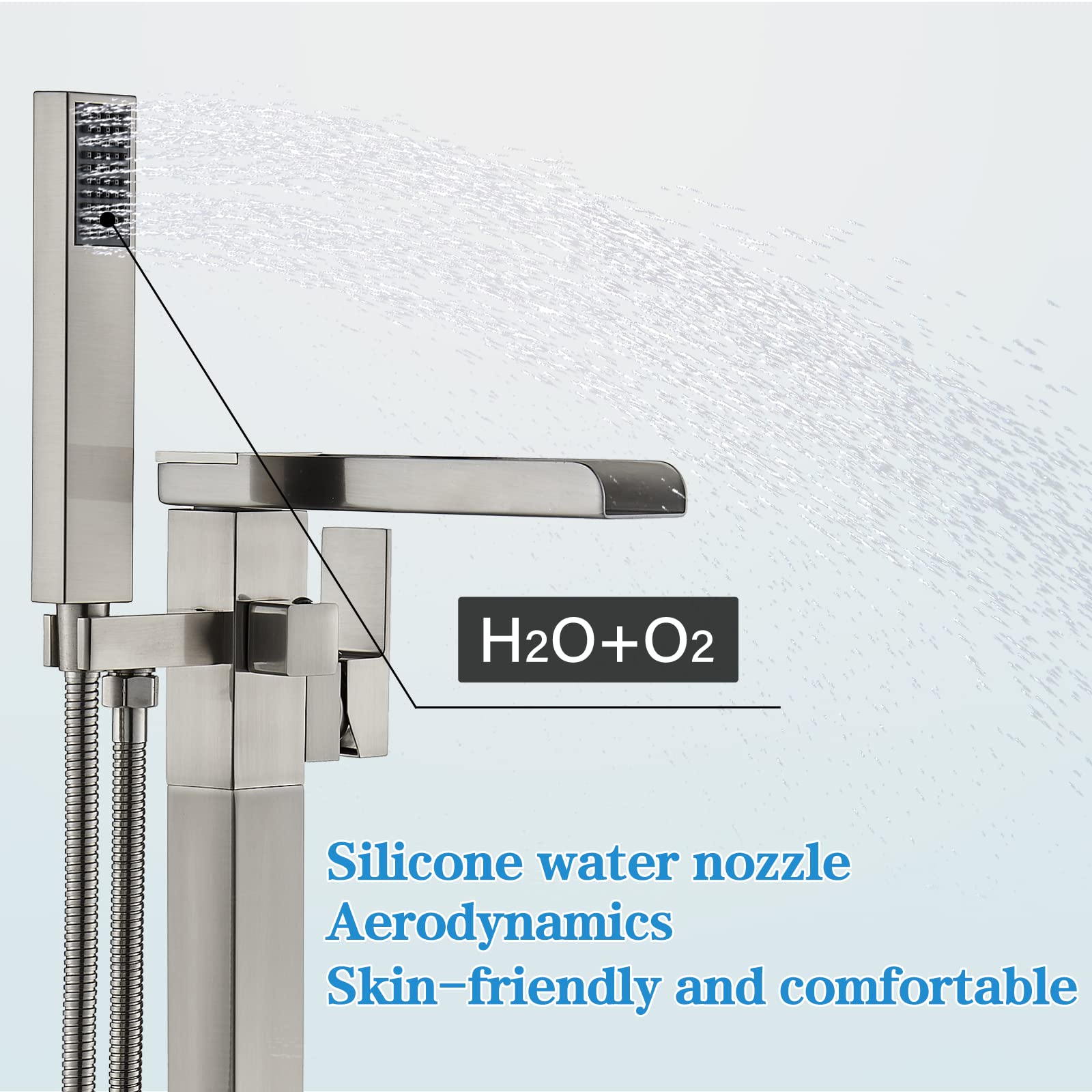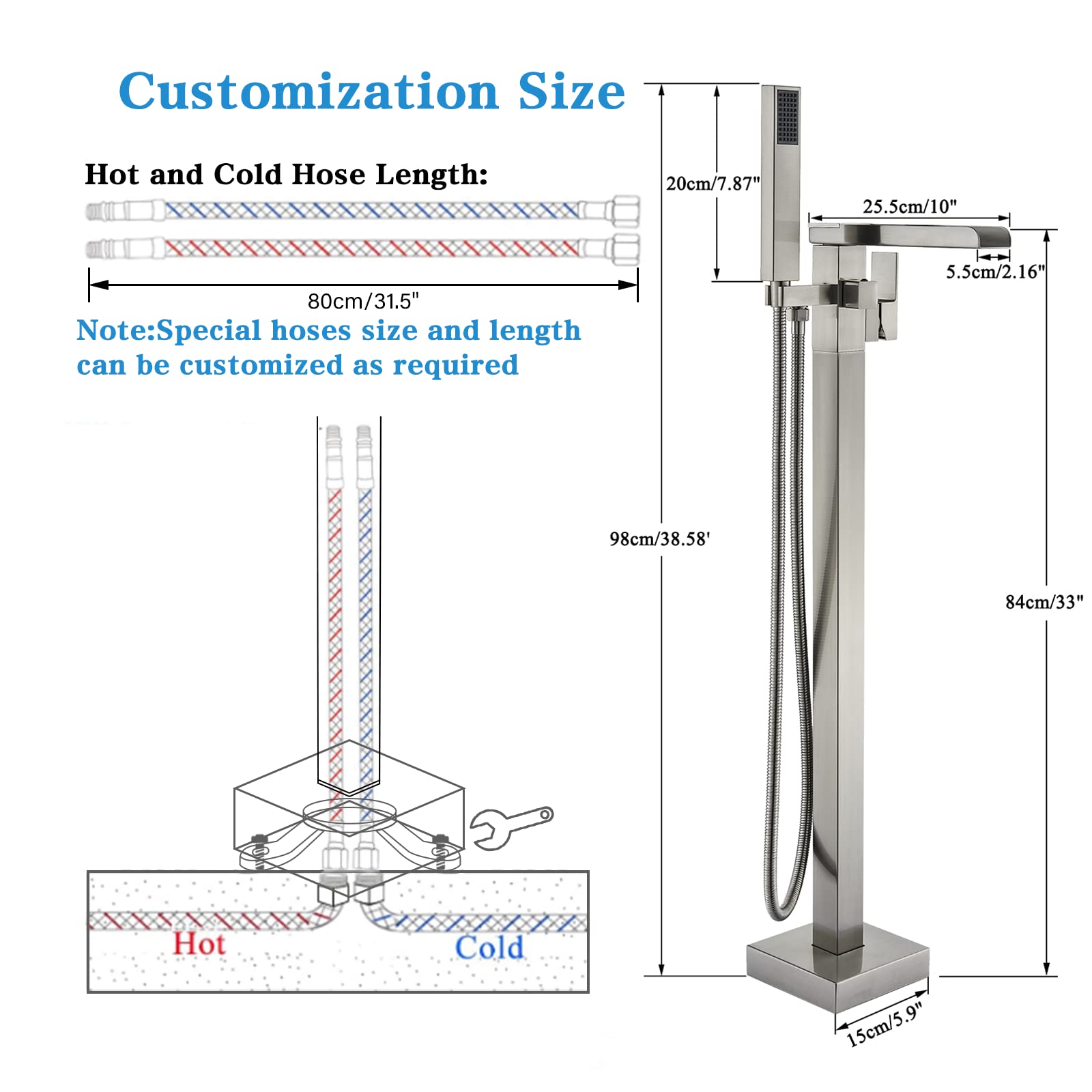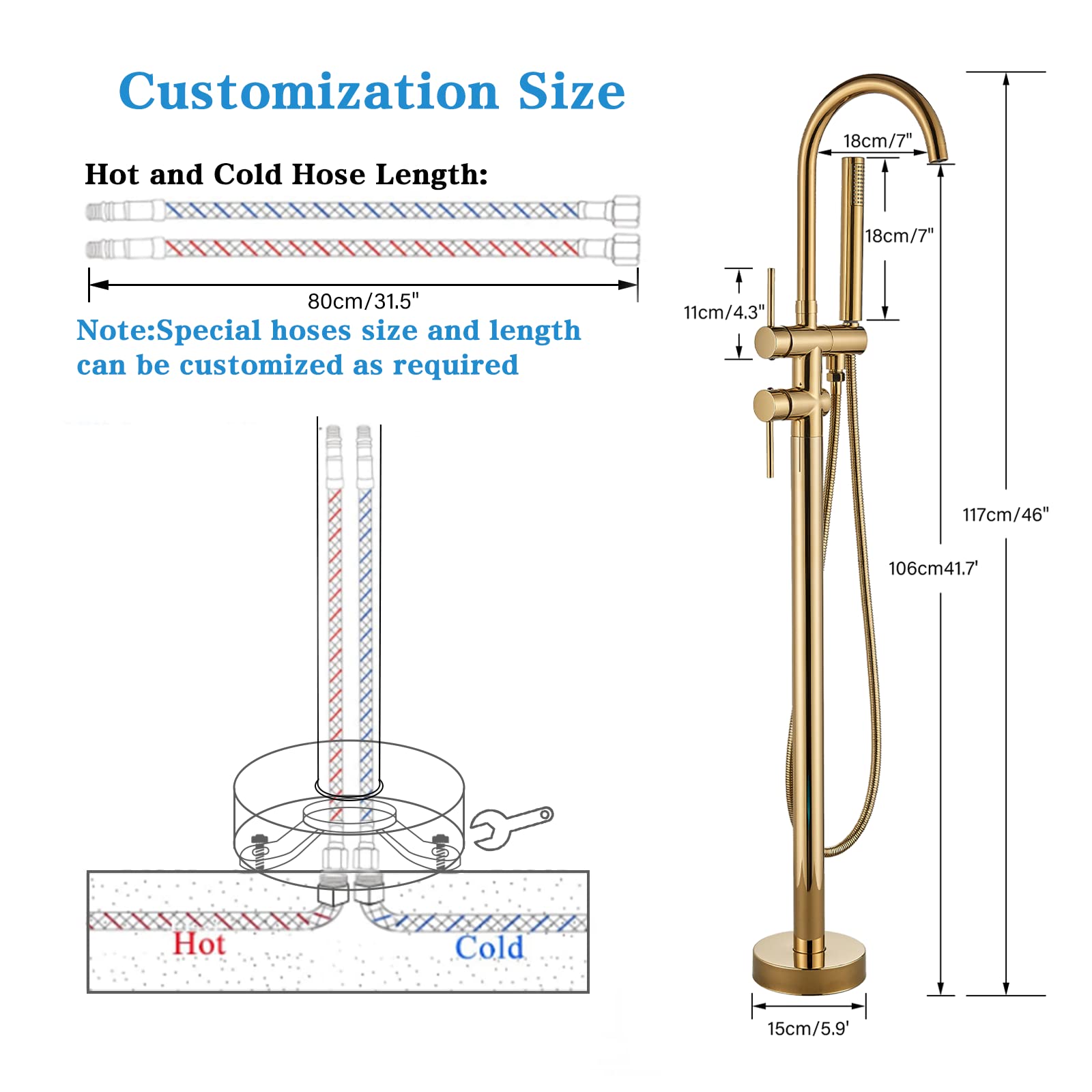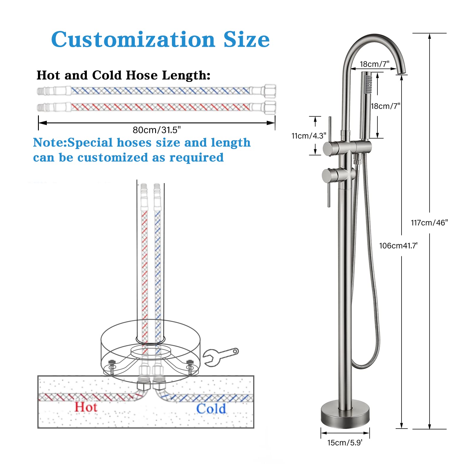 - 【Freestanding Faucet Dimension】:Overall Height: 46.06" / 117cm, Spout Height: 41.73"/ 106cm, Spout Reach: 7.08"/ 18cm.Please see picture 7 for detailed dimensions.