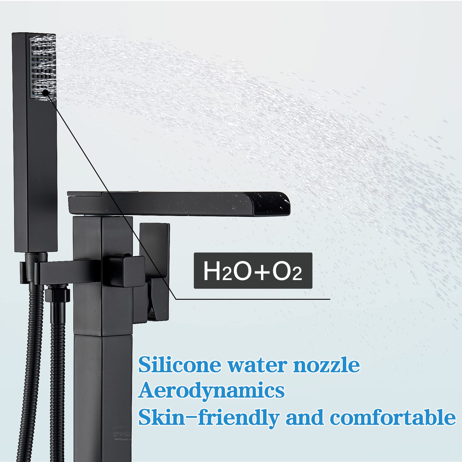 YAGATAP Freestanding Bathtub Faucet Floor Mount Tub Filler Matte Black High Flow Shower Faucets with Handheld Shower Mixer Taps Swivel Spout